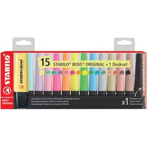 Stabilo Boss® Original - Set di 15 evidenziatori a tampone con inchiostro a base d'acqua, ampiezza tratto 2-5 mm, colori fluo e pastello