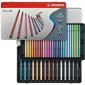 STABILO Pen 68 Pennarello 1 mm - Scatola in Metallo con 40 Colori Assortiti, Inchiostro a Base d'Acqua, Resistente fino a 24 Ore