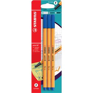 Stabilo Point 88 Fineliner Blu 0,4 mm - Confezione da 3 pz con Punta Rinforzata e Cappuccio Ventilato