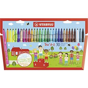 STABILO Trio A-Z - Pennarello a Punta Fine 0,7 mm con Fusto Triangolare - Confezione da 30 Colori Assortiti