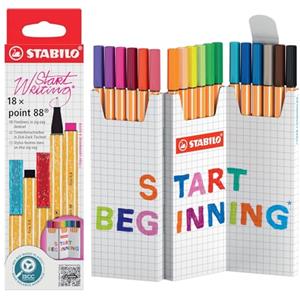 Stabilo point 88 Fineliner 0,4 mm - Set da 18 colori assortiti con fusto esagonale e punta rinforzata