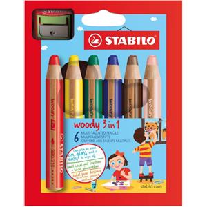 STABILO Woody 3 in 1 - Matita colorata Multi-Funzione con Temperino - Astuccio da 6 pezzi - Mina da 10 mm