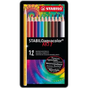 STABILO Pastelli Acquerellabili Aquacolor - Astuccio Metallo 12 Pezzi - Tratto 2,8 mm - Colori Assortiti