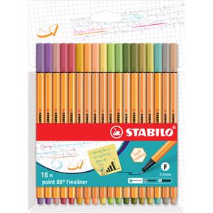 STABILO Point 88 Fineliner 0,4 mm - Astuccio da 18 colori caldi assortiti - Punta rinforzata in metallo