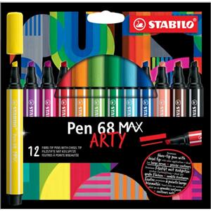 STABILO Pen 68 MAX - Pennarello Premium a tratto doppio (1 5 mm) con punta a scalpello - Astuccio da 12 colori assortiti