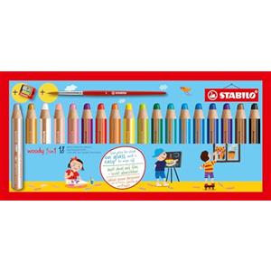 STABILO Woody 3 in 1 - Matita Colorata Multi-Funzione con Temperino e Pennello - Astuccio da 18 Colori Assortiti - Mina XXL 10 mm