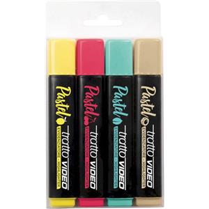 Tratto Video Pastel - Set di 4 evidenziatori a base acqua con punta a scalpello, colori pastello: limone, ciliegia, menta, cocco