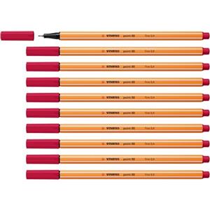 Stabilo Point 88 Fineliner Rosso Cremisi - Confezione da 10 - Punta Rinforzata in Metallo, Tratto 0,4 mm