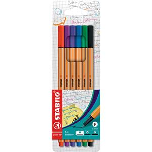 Stabilo Point 88 Fineliner 0,4 mm - Astuccio da 6 Colori Assortiti con Punta Rinforzata