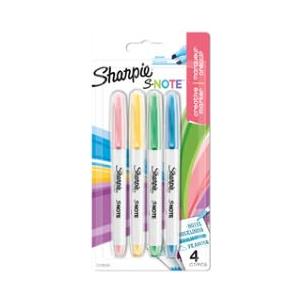 Sharpie S-Note Pennarelli Colorati - Punta Scalpello 2 in 1 - Colori Assortiti (Rosa, Giallo, Verde, Azzurro) - Astuccio da 4 Pezzi