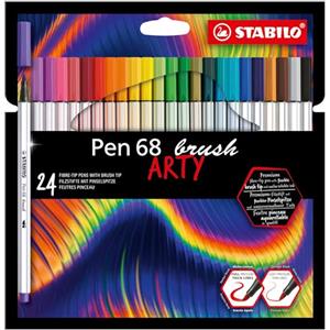 Stabilo Pen 68 brush - Pennarello Premium con punta a pennello - Astuccio da 24 colori assortiti
