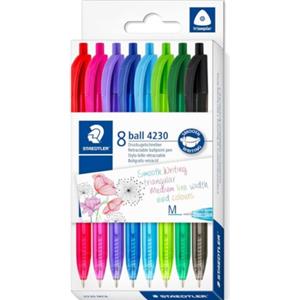 Staedtler Penna a Sfera Retrattile Assortita - Confezione da 8 Colori, Fusto Triangolare e Tratto Medio