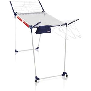 Leifheit Stendibiancheria a Torre Pieghevole 42 Metri - 3 Livelli, 6 Ruote, Bianco e Blu