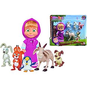 Masha and the Bear Simba - Masha e Orso, Bambola Masha Cm 12, 109301060, + 3 Anni, con 5 Animaletti