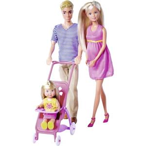 Simba 105733673 - Bambola da gioco Steffi Love Happy Family, Kevin, Evi e Baby con passeggino, 11 pezzi, accessori, 30 cm, a partire dai 3 anni in su