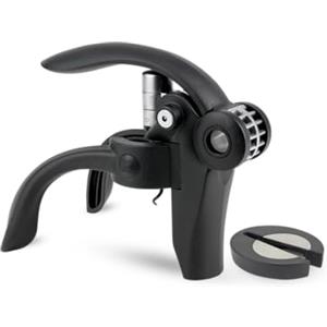 Vacu Vin Cavatappi a Leva Automatico Orizzontale in Acciaio Inox e Plastica - Elegante Apribottiglie Nero e Argento