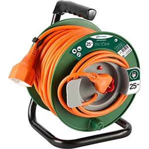 Electraline Avvolgicavo Universale 25m con Protezione Termica per Elettrodomestici da Giardinaggio
