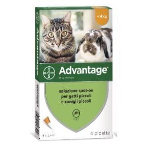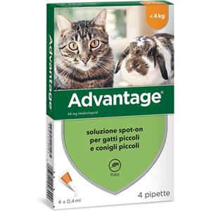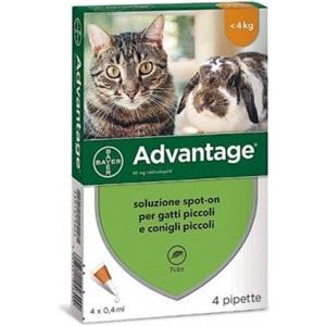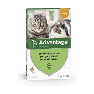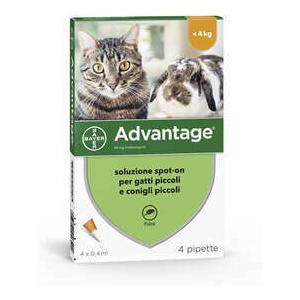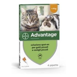 Advantage Antiparassitario Spot-On Gatti E Conigli Piccoli Peso Fino A 4 Kg 4 Pipette 0,4 Ml