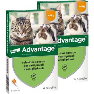 Elanco Cat Advantage per Gatti e Conigli (<4kg) - Offerta [PREZZO A CONFEZIONE] Quantità minima 2, Confezione da 4 Pipette