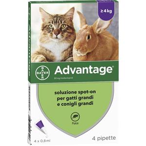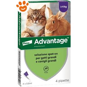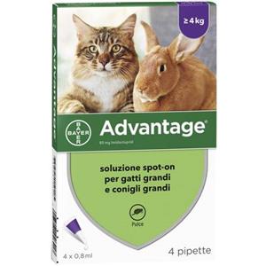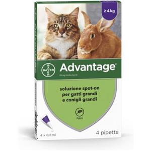 Advantage Antiparassitario Spot-On Gatti E Conigli Grandi Peso Oltre 4 Kg 4 Pipette 0,8 Ml