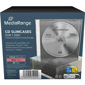 MediaRange Custodia Slim 5.2mm per CD/DVD - Confezione da 10 pz, Nero e Trasparente