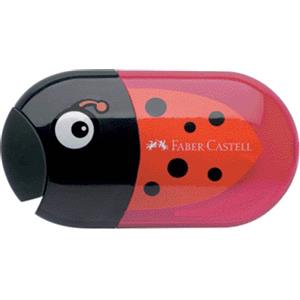 Faber-Castell 183526 Temperamatite Ergonomico Rosso con Serbatoio e Due Fori per Matite Standard e Jumbo