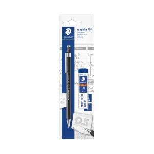 STAEDTLER Portamine Grafite 778 - Mina 0,5 mm, Fusto Sottile Esagonale Nero Opaco con Gommino e Astuccio da 12 Mine