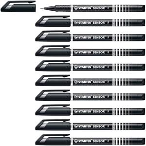 Stabilo SENSOR F Fineliner con Punta Ammortizzata 0,3 mm Nero - Confezione da 10 pz
