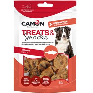 Camon Treats & Snacks Monetine di Salmone - Snack Masticabile per Cani, 80GR, Monoproteico e Gluten Free