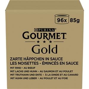 Purina Gourmet Gold Delicate Tartine in Salsa - Cibo Umido per Gatti Adulti, Mix di Manzo, Pollo, Fegato, Salmone, Tacchino e Anatra, Confezione da 96 x 85 g