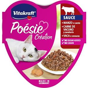 Vitakraft Poésie Création - Alimento Umido per Gatti Adulti con Manzo e Carote in Salsa, 85g