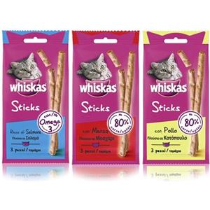 Whiskas Cat Sticks Salmone - Snack per Gatti con Omega 3, Confezione da 3 Stick da 6g in Alimenti Cani e Gatti