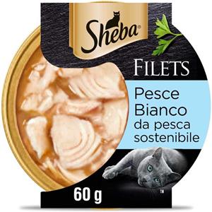 Sheba Filets 16 x 60gr Cibo Umido per gatti con Pesce Bianco BOX da 16 vaschette da 60g ognuna