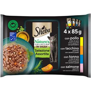 Sheba Nature's Collection Cibo Umido per Gatti Selezione Assortita in Salsa - 4 Bustine da 85g con Pollo, Tacchino, Tonno e Salmone