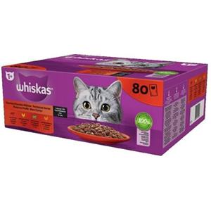 WHISKAS Adult Cibo Umido in Bustine 80x85g - Pasti Classiche in Salsa con Manzo, Pollo, Agnello e Pollame