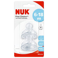NUK First Choice Tettarella in Silicone Media 6-18 Mesi - 2 Pezzi, Senza BPA e Anti-Colica