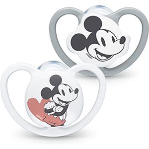 NUK Succhietto Space Disney Mickey Mouse Grigio - Silicone senza BPA, 0-6 mesi, 2 Pezzi con Aerazioni Extra Larghe