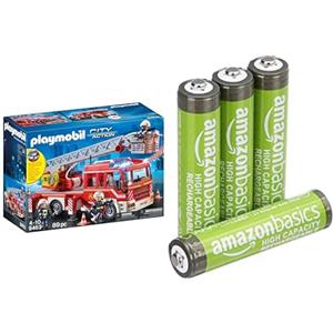 PLAYMOBIL Autopompa VF, scala/luci/suoni, 5+ anni, 9463, & Batterie AAA Ricaricabili Amazon Basics 4 pz, 850mAh