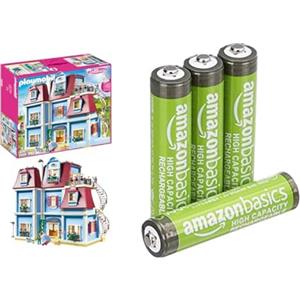 PLAYMOBIL Casa Bambole, campanello funzionante, 4+ anni, 70205, & Batterie AAA Ricaricabili Amazon Basics 4 pz, 850mAh
