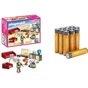 PLAYMOBIL Dollhouse Soggiorno, effetti luce, 4+ anni, 70207, & Batterie AAA Alcaline Amazon Basics 12 pz, 10 anni