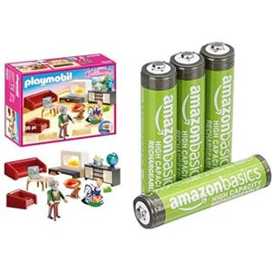 PLAYMOBIL Dollhouse Soggiorno, effetti luce, 4+ anni, 70207, & Batterie AAA Ricaricabili Amazon Basics 4 pz, 850mAh