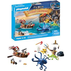 PLAYMOBIL Pirates 71636 Calendario dell'Avvento: Pirati, 24 sorprese, tra cui due personaggi, un gigantesco polpo e accessori, giocattolo per bambini dai 4 anni in su