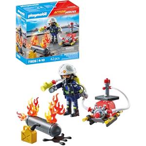 Playmobil 71826 - Pompiere con Pompa d'Acqua e Cannone, Fiamme Riposizionabili, Gioco per Bambini dai 4 Anni