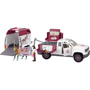 Schleich Horse Club 42704 - Veterinaria Mobile con Rimorchio, Set da Gioco con Pick-up, 1 Cavallo e Accessori, 90 Pezzi, per Bambini da 5 Anni