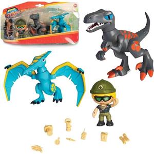 Famosa Dino Pack - Gioco con 2 Dinosauri e 1 Personaggio Esploratore con Parti Intercambiabili per Bambini dai 4 Anni