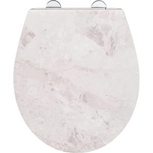 WENKO Sedile WC Grey Marble in Duroplast Antibatterico con Meccanismo di Abbassamento Automatico e Fissaggio Igienico Fix-Clip, 38 X 44,5 cm