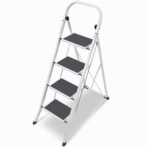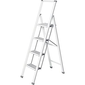 WENKO Scaletta Pieghevole in Alluminio con 4 Gradini Antiscivolo e Design Compatto