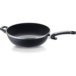Fissler Ceratal Orbit Black Grande Padella Wok in alluminio, da 32 cm e 6 l, con rivestimento antiaderente in ceramica, bordo alto, senza PFAS/PTFE, per piani cottura a induzione