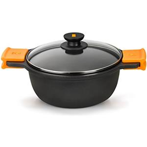 BRA Casseruola Fonda Antiaderente 24 cm in Alluminio pressofuso con Coperchio, Compatibile con Induzione