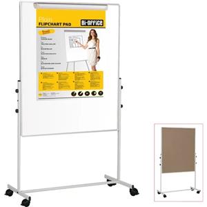 Bi-Office Lavagna Duo 150x120 cm - Superficie Bianca Scrivibile e Sughero, Supporto Regolabile su Ruote